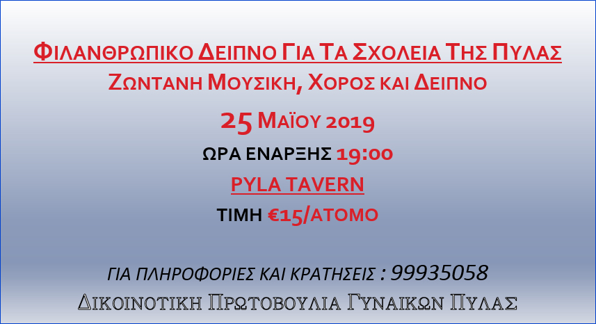 Φιλανθρωπικό Δείπνο για τα Σχολεία της Πύλας (25/5/2019)